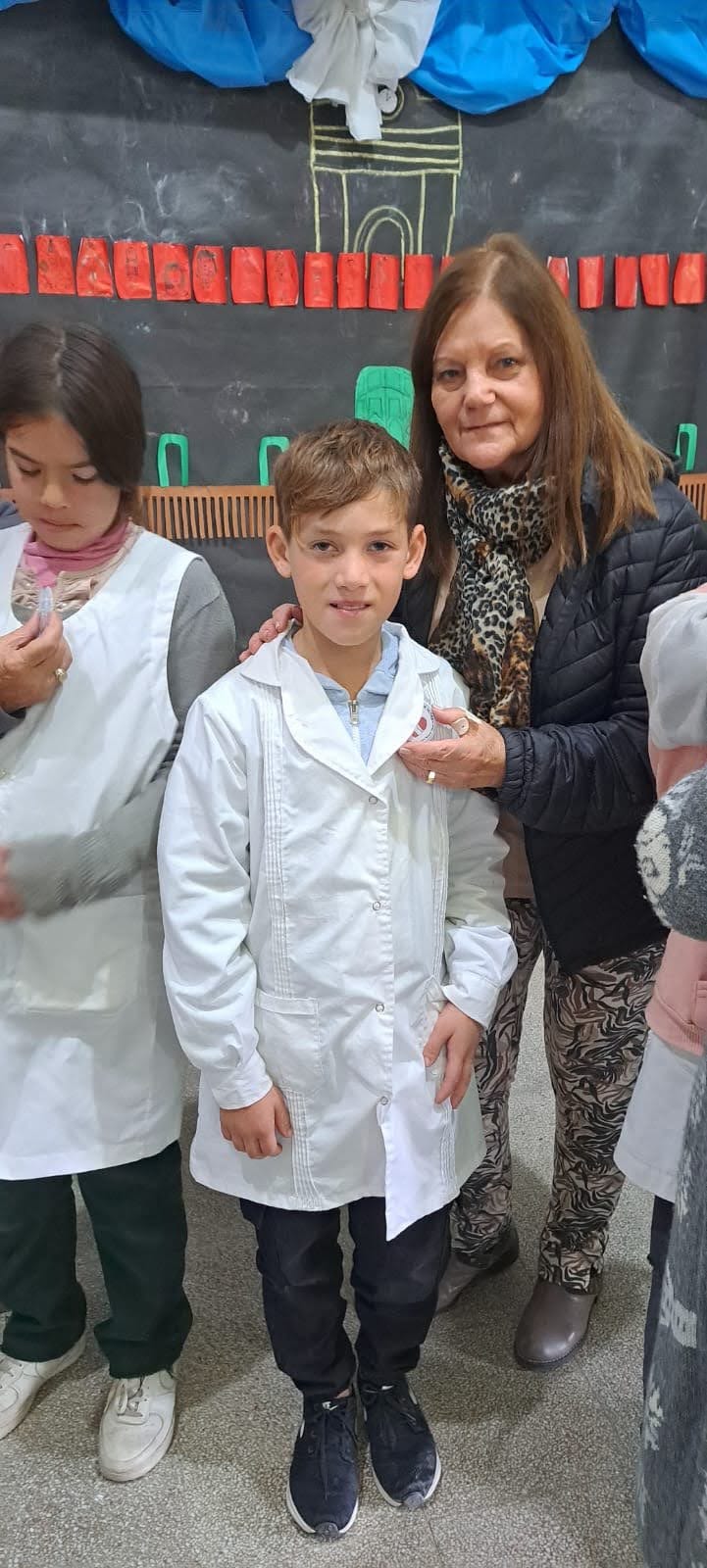 Luego la docente Graciela, muy emocionada, agradeció el reconocimiento a tantos años dedicados a su noble tarea, más de veinte, y ahora a un año de la incorporación de sus alumnos con el total apoyo de toda la comunidad, expresó su agradecimiento y satisfacción.¡! Felíz!¡ Después de un acalorado aplauso, Docentes Jubilados procedieron a colocar a todos los pequeños, su distintivo. La Comisión felicita y agradece el recibimiento y atención recibida por la Escuela N° 4.