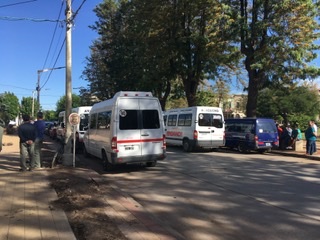 Gran parte de los 16 propietarios de combis que brindan servicio en el transporte rural educativo, se hicieron presentes fuera de la Intendencia a fin de efectuar un reclamo por la falta de pago. “Se nos debe la mitad de octubre y desde allí a la fecha. Nos pelotean, no nos atienden, claramente están jugando con nosotros. Pero cuando tenemos que pagar combustibles, seguro, sueldos de los choferes, no podemos nosotros retrasar nuestras obligaciones. Queremos que nos den una respuesta urgente” señaló uno de los propietarios en declaraciones radiales.