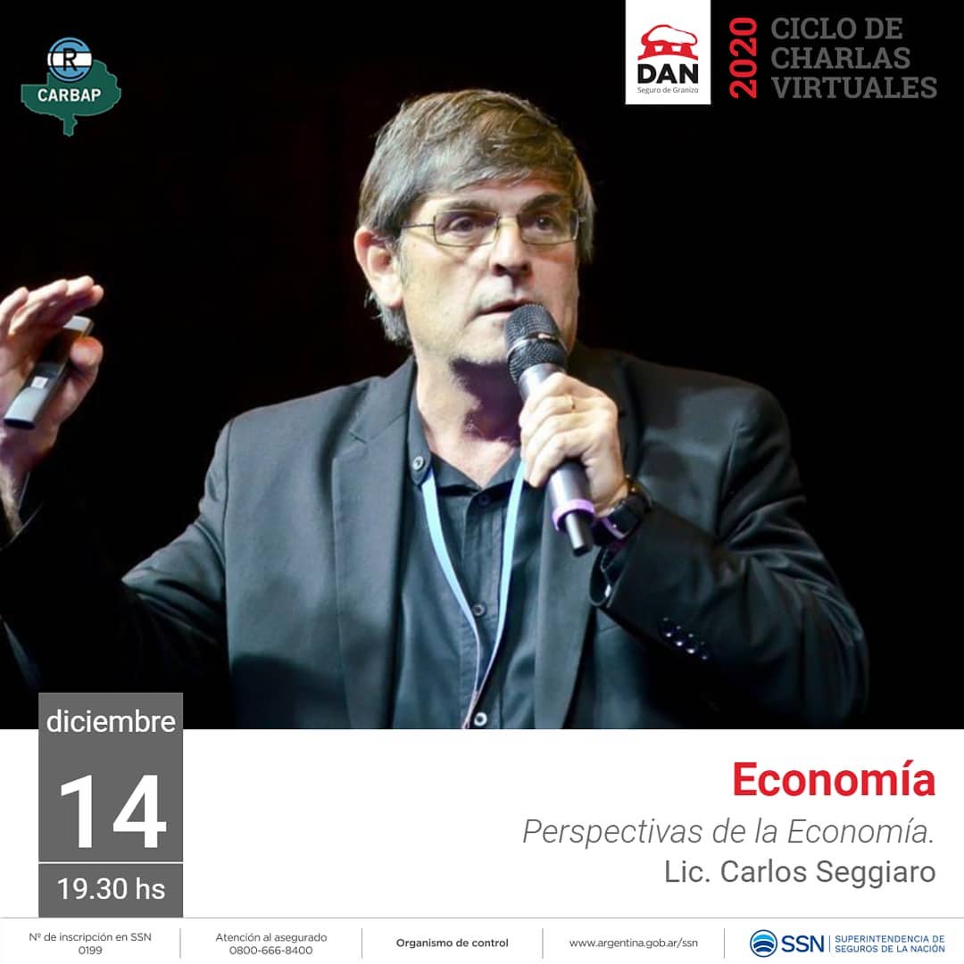 El Lunes 14 de Diciembre desde las 19.30 hs. Última Charla Virtual del año con el Lic. Carlos Seggiaro. Te esperamos para conversar acerca de las Perspectivas de la Economía.