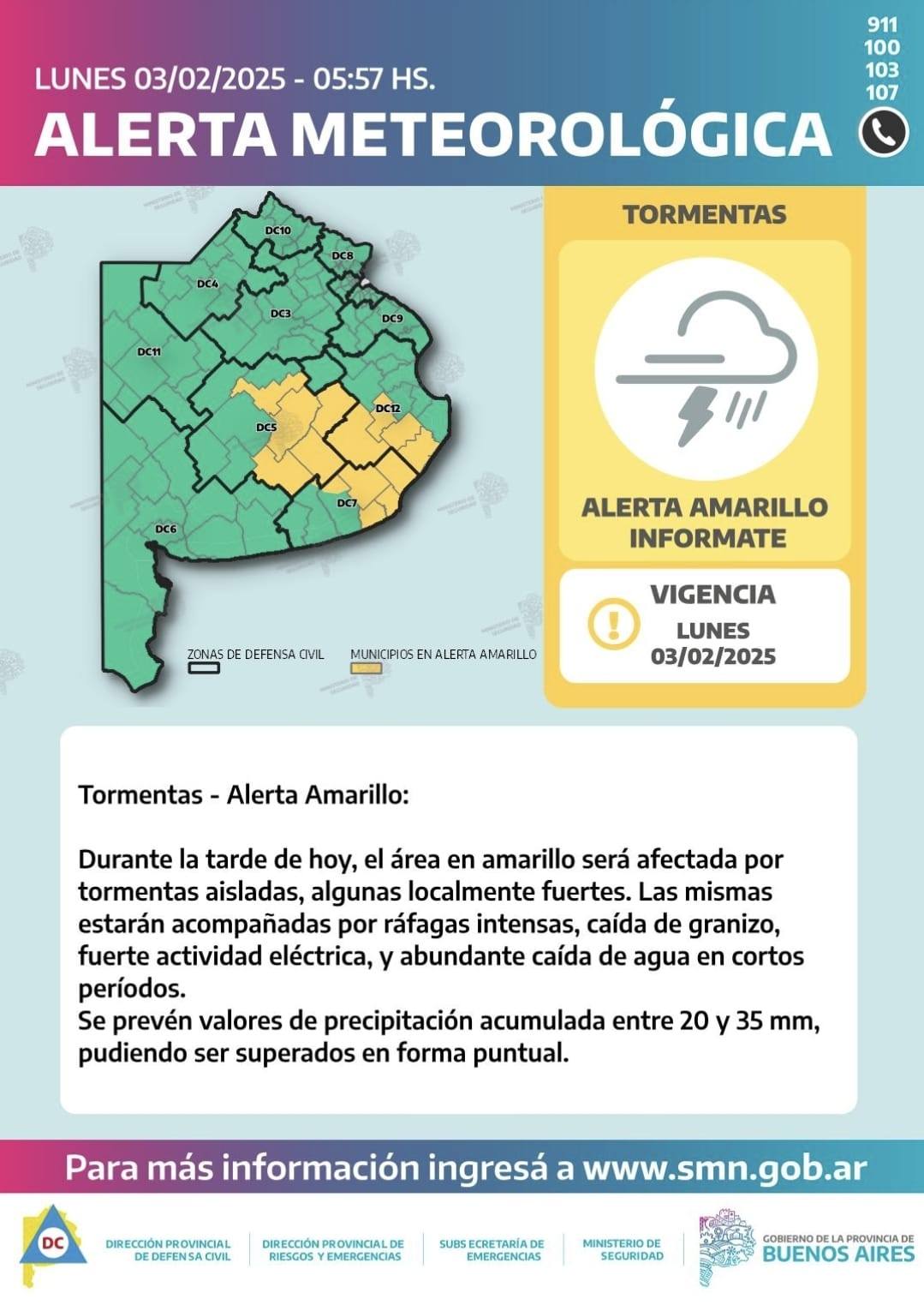 Lunes 3 de Febrero de 2025 – Rige una alerta amarilla por tormentas para Ayacucho y la región