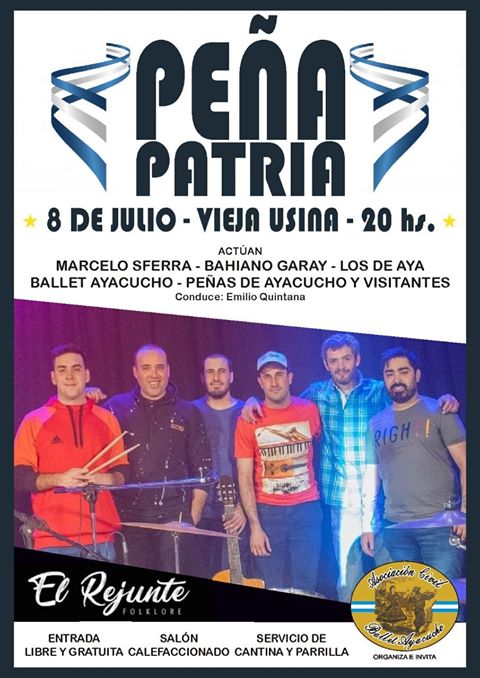 Este Lunes 8 de Julio, en vísperas a la llegada del Día de la Independencia, la Asociación Civil “Ballet Ayacucho” realizará en la Vieja Usina una Peña Patria, desde las 20 horas, la que será con entrada libre y gratuita.