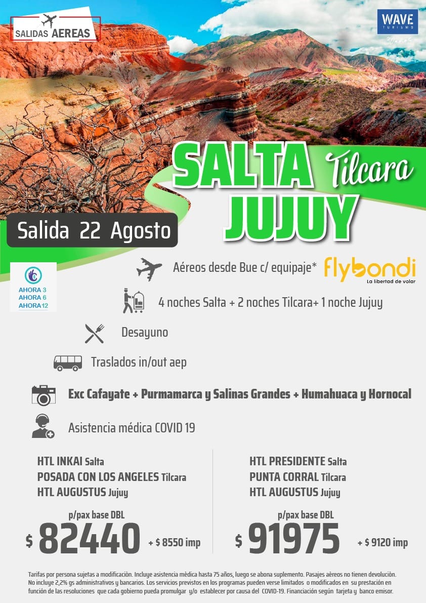 Cómo te ves para unas merecidas vacaciones en Agosto por todo el noroeste argentino, aprovechando Pre Viaje y disfrutando de paisajes soñados? Marita Aranda y WAVE Viajes te llevan a Salta y Jujuy, con aéreos desde Buenos Aires. Un total de 7 noches (4 en Salta, 2 en Tilcara y 1 en Jujuy), con traslados incluidos al aeropuerto más desayuno.