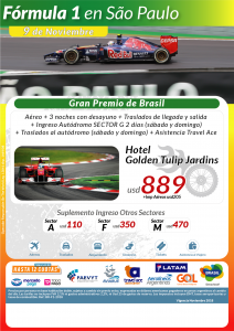 Y quien realmente puede acertarte esta posibilidad increíble es Marita Aranda Viaje, representante en Ayacucho de Wave Viajes, que te lleva a la Fórmula 1 en San Pablo, el 9 de Noviembre, con todo incluido, para que disfrutes del Gran Premio de Brasil.
