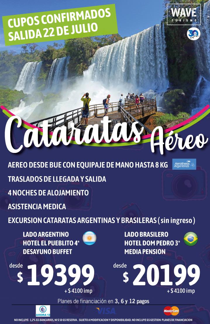 Marita Aranda Viajes, representante de WAVE Viajes, te ofrece Vacaciones de Invierno en Cataratas, con vuelo y equipaje de mano de hasta 8 kilos, traslados de llegada y salida, 4 noches de alojamiento, asistencia médica y excursiones a Cataratas del lado argentino como brasileño.