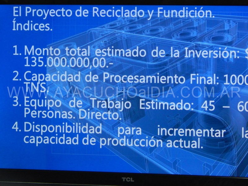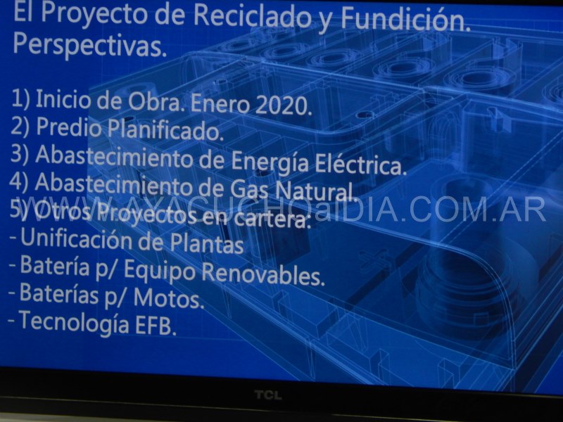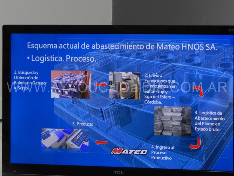 Franco Mateo, en nombre de la empresa que orgullo ayacuchense, explicó:»Agradecemos al municipio y al H.C.D. Mateo es una empresa familiar, que hace 47 años que está radicada en la ciudad y cuenta con dos plantas de fabricación, formando ambas el mismo proceso de producción, que es continúo y en ambos lugares, tanto en ruta 50 como en Av. Bavio. La capacidad actual de producción es de 120.000 baterías, aunque hoy produce la mitad. Cuenta con 250 empleados de manera directa y unos 30 en forma indirecta. Hoy distribuye el producto en todo el país. Lo que pretendemos es armar una recicladora de baterías y de fundición de plomo. Esto es inédito y permitirá ampliar la producción. Esto está pensado en tres etapas, que demandará unos 6 años».