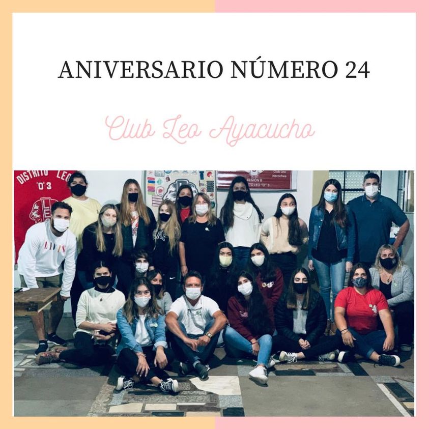El pasado 14 de Abril el Club Leo, celebró su aniversario número 24! Los leos, socializaron; «Queremos agradecer a todos los jóvenes que han sido parte, sin dudas cada uno ha dejado huellas. Gracias a toda la comunidad por siempre acompañarnos en nuestras obras. Gracias a los medios de comunicación por siempre difundir nuestras actividades. Gracias al Club de Leones de Ayacucho por patricionarnos, y feliz aniversario CLUB DE LEONES DE AYACUCHO. ¡¡GRACIAS!!»