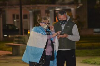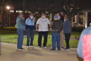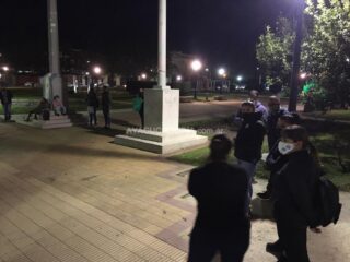 Efectivos en actividad como jubilados de la Policía se hicieron presentes a la movilización en la Plaza San Martín para luego de entonar el Himno Nacional Argentino y la marcha de Malvinas, invitaron a dar una vuelta alrededor de la plaza para acudir luego hacia la Comisaría.