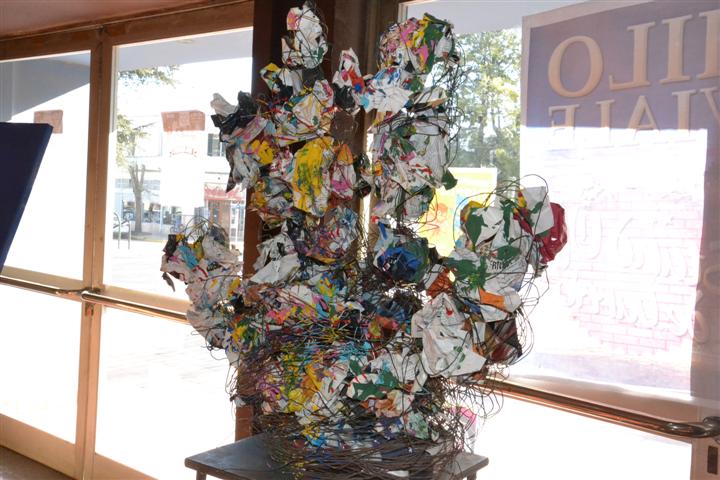 “Mi planteo era buscar y unir a los artistas plásticos argentinos que habían visto y hacer una reinterpretación, buscarle una resignificación, utilizando con materiales de deshecho o lo que encuentran; y la verdad que salió bárbaro. Tenemos un grupo estupendo, con una creatividad bárbara” siguió diciendo Liliana Richidei sobre el grupo de 19 alumnas de la carrera de Artesa Visuales.