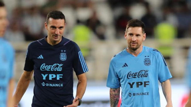 Ante su ausencia, para un ensayo informal de fútbol Lionel Scaloni decidió parar en su lugar al Papu Gómez, quien de cara al estreno pelea con Alexis Mac Allister por un lugar en la izquierda del mediocampo.
