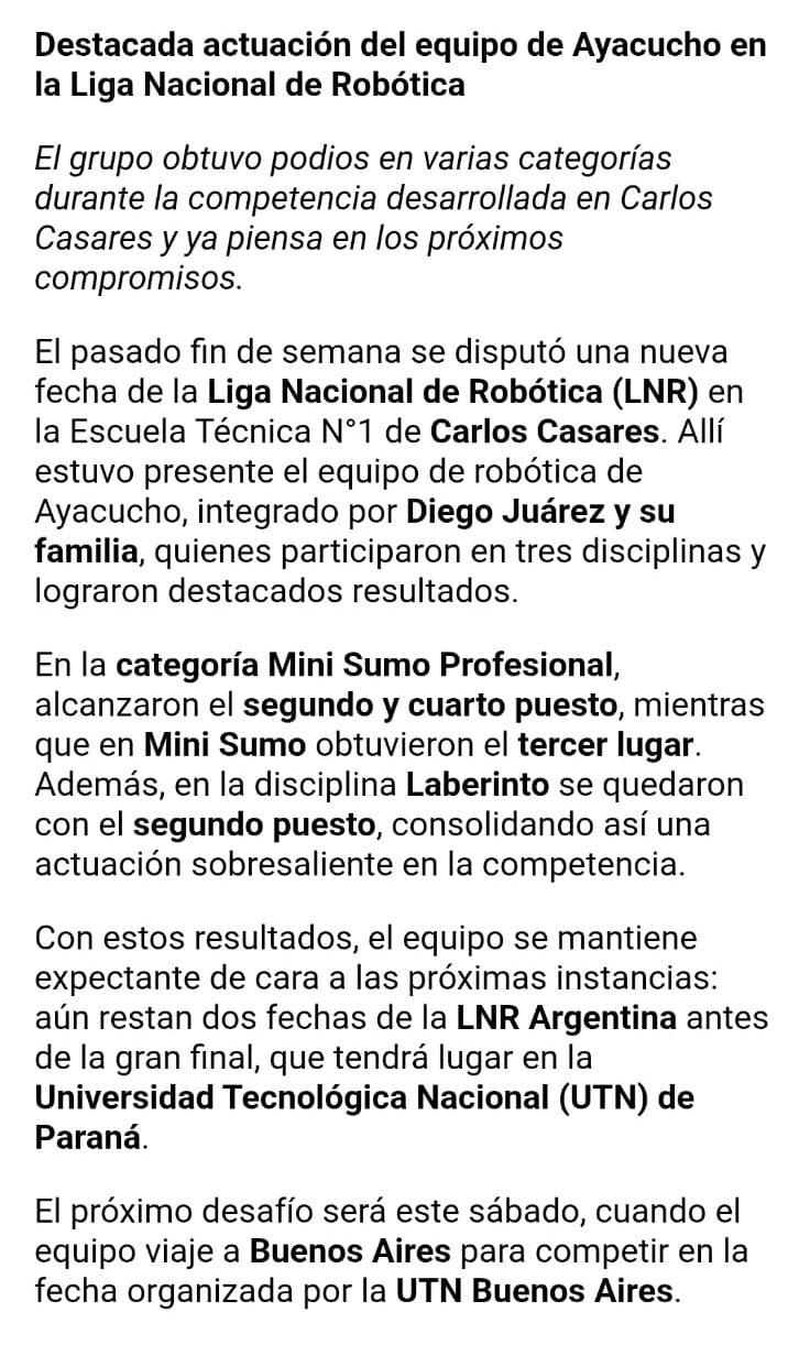 Notable actuación de Ayacucho en la Liga Nacional de Robótica en Carlos Casares
