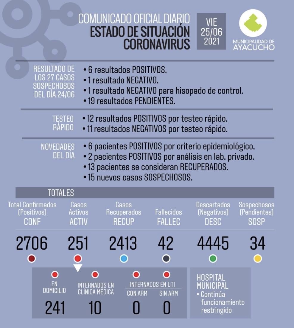 Este viernes los positivos duplicaron el número de recuperados de Covid, porque entre hisopados, testeos y por criterio se registraron 26 nuevos casos en tanto que hubo 13 recuperados.