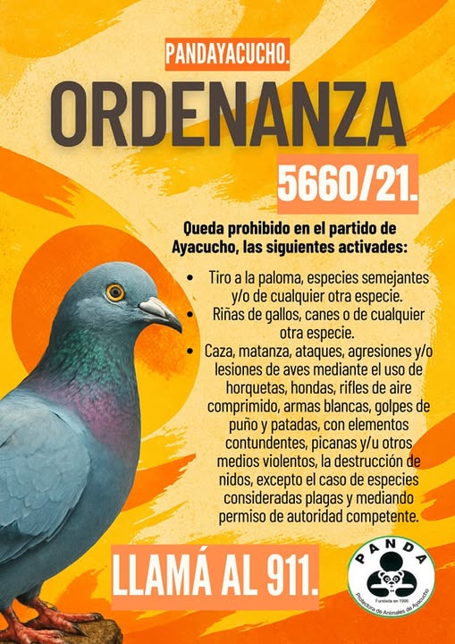 PANDA recuerda que está vigente la ordenanza 5660/21 sobre la caza, matanza o ataque de animales 12 abril, 2025 Pablo Tusq Locales, locales DIA 0 X