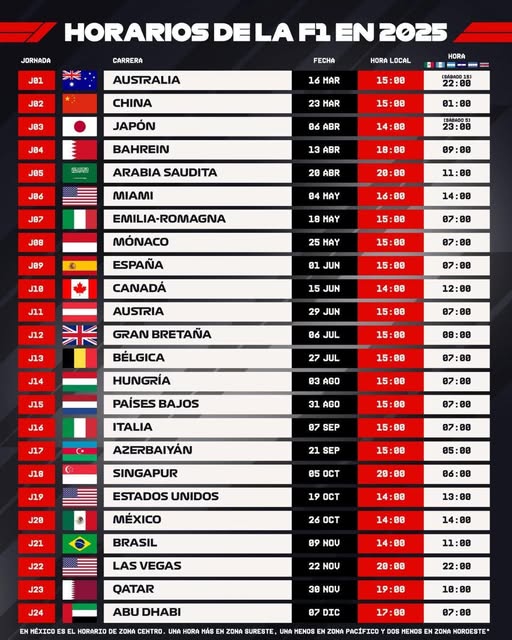 Para agendar; todos las carreras, con fecha y horario para la Fórmula 1, temporada 2025