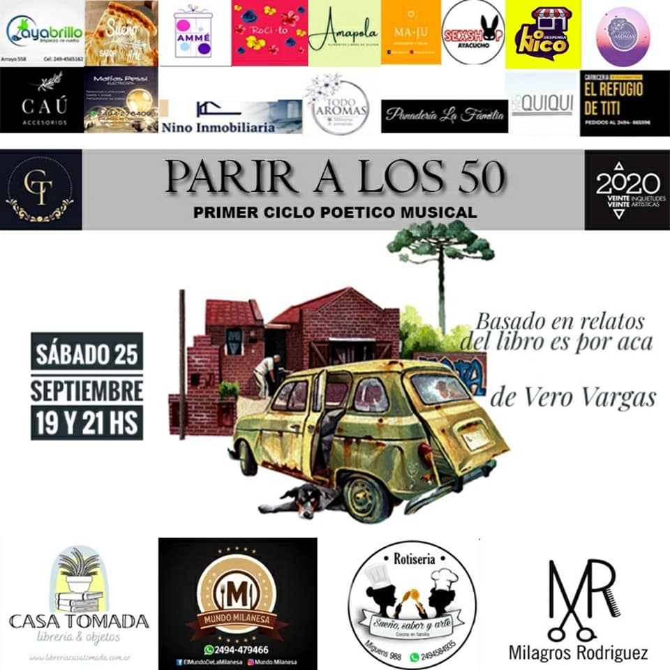 El próximo sábado 25/09 alas 19 y 21, se presentará en la Casa del Teatro «PARIR A LOS 50». Ciclo Poético Musical, inspirado en el libro «Es por acá» de Vero Vargas.