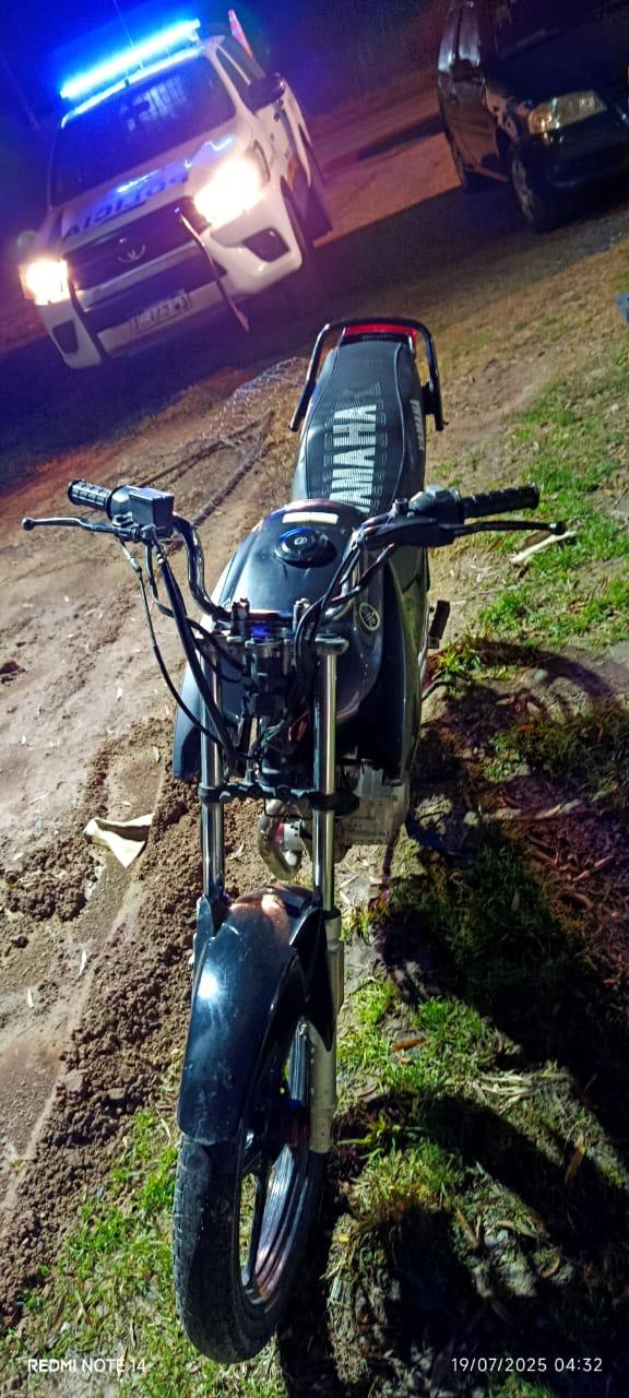 Efectivos policiales observaron una motocicleta marca Honda XR 150cc, color rosa, circulando sin chapa patente, a gran velocidad, su conductor identificado como (R. D. ), al advertir la presencia policial abandonó el rodado con las llaves colocadas y se dio a la fuga.