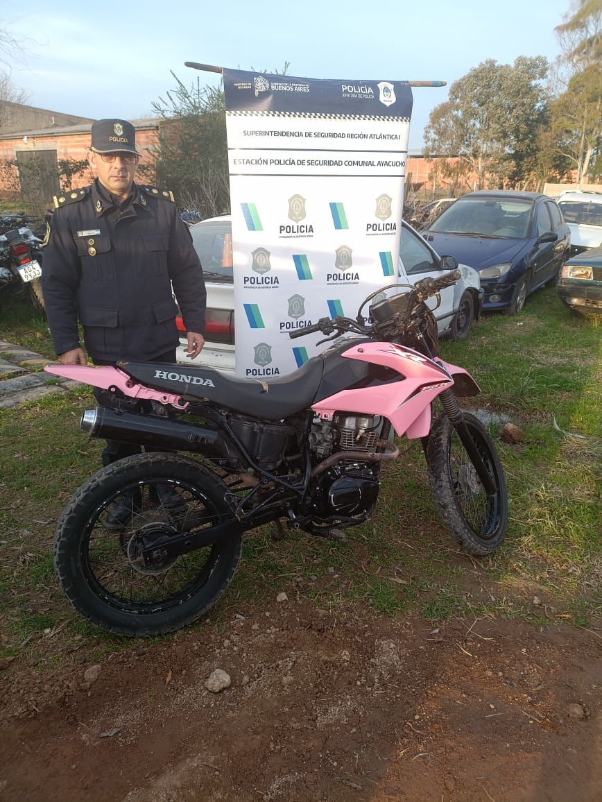 Se constató que tanto el número de motor como el de cuadro se encuentran ilegibles, motivo por el cual se labraron actuaciones por Infracción al Artículo 289 del Código Penal, con intervención de la UFI N°5 a cargo de la Dra. Andriulo (Departamento Judicial Dolores).
