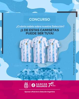 ¿Te gustaría ganar la camiseta oficial de la AFA – Selección Argentina? 🇦🇷 Participá del #concurso ingresando a 👉 http://bit.ly/ConcursoSelección-2 y descubrí cuánto sabés sobre la Albiceleste ⚽ ¡Podés ser 1 de los 3 ganadores!
