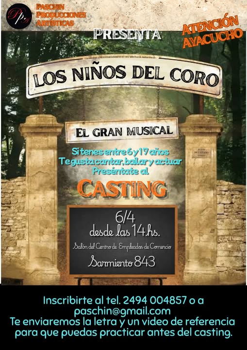 Paschin producciones presenta «Los Niños del Coro» / Casting 6-4 en Empleados de Comercio