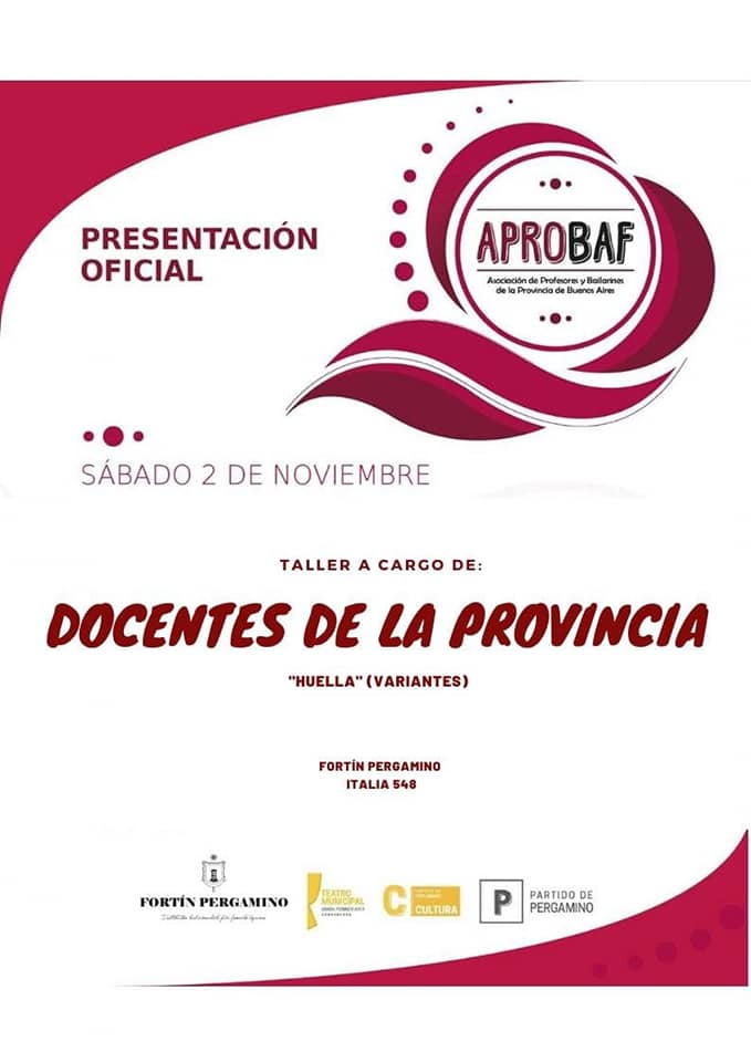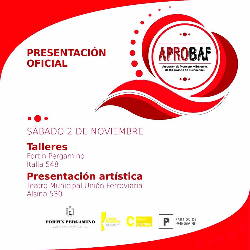 Bailarines y Profesores de la Provincia de Buenos Aires, se reunirán este sábado 2 de Noviembre en Pergamino, donde se concretará entre otras actividades el lanzamiento Oficial de APROBAF.