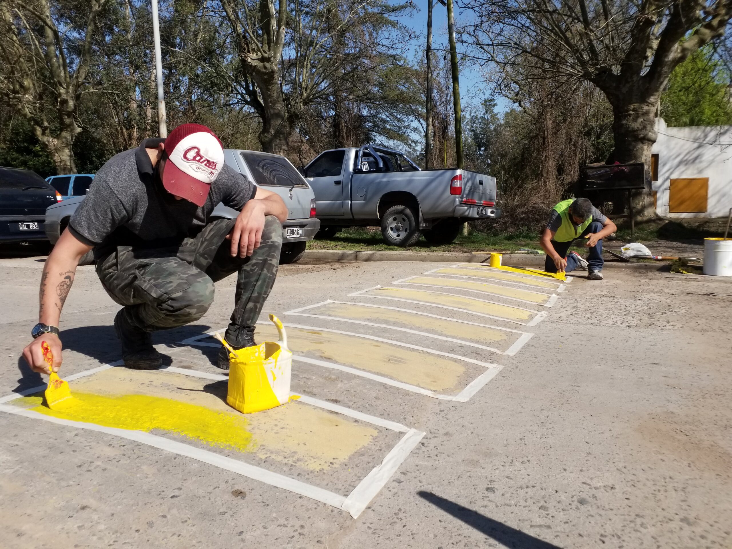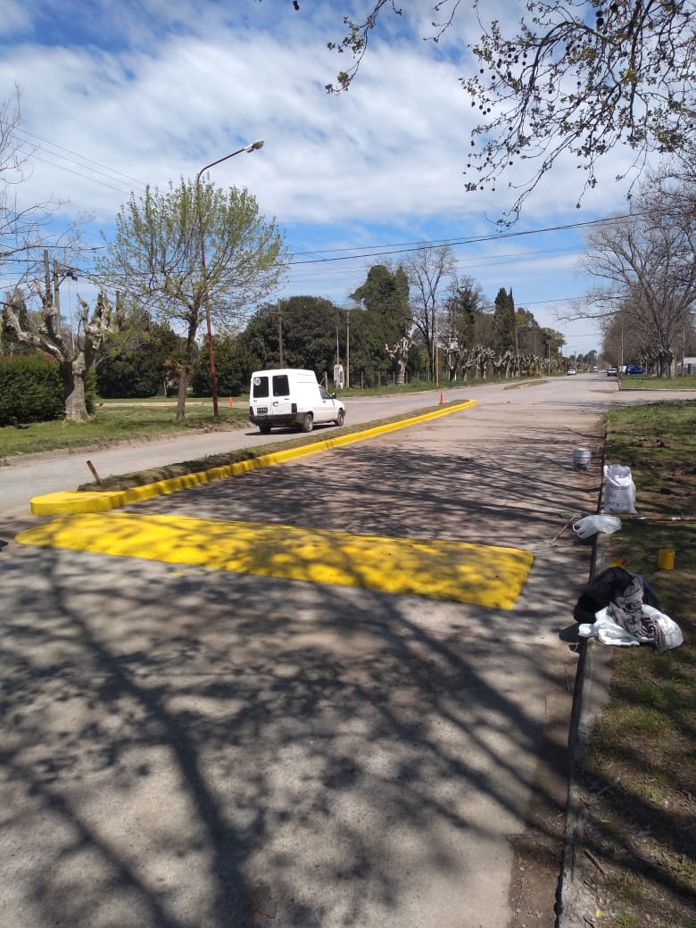 Las tareas se iniciaron con la pintura refractaria amarilla en los reductores de velocidad de Avenida Bavio, entre Avenida Dindart y calle Pueyrredón, y en los boulevares de ambas manos de la mencionada arteria.