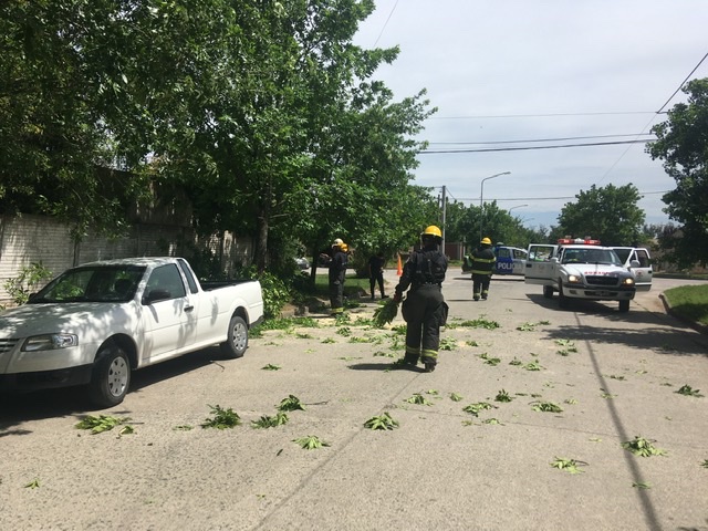 Este mediodía de domingo y como consecuencia del viento en la ciudad, se produjo el desprendimiento del gajo de un árbol en la esquina de Vilardaga y Dindart, y que motivó la intervención de Bomberos Voluntarios, quienes procedieron a cortar el mismo y retirarlo de la calle para que no interfiriera el paso vehicular, como también pudiera generar riesgo.