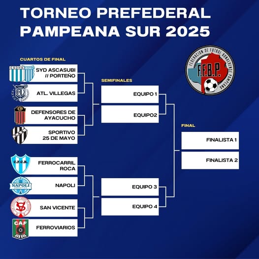 ¡Llegó la hora de la verdad! Así quedan los cruces de los Cuartos de Final del Torneo Prefederal Pampeana Sur 2025.