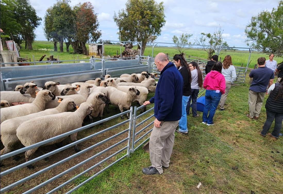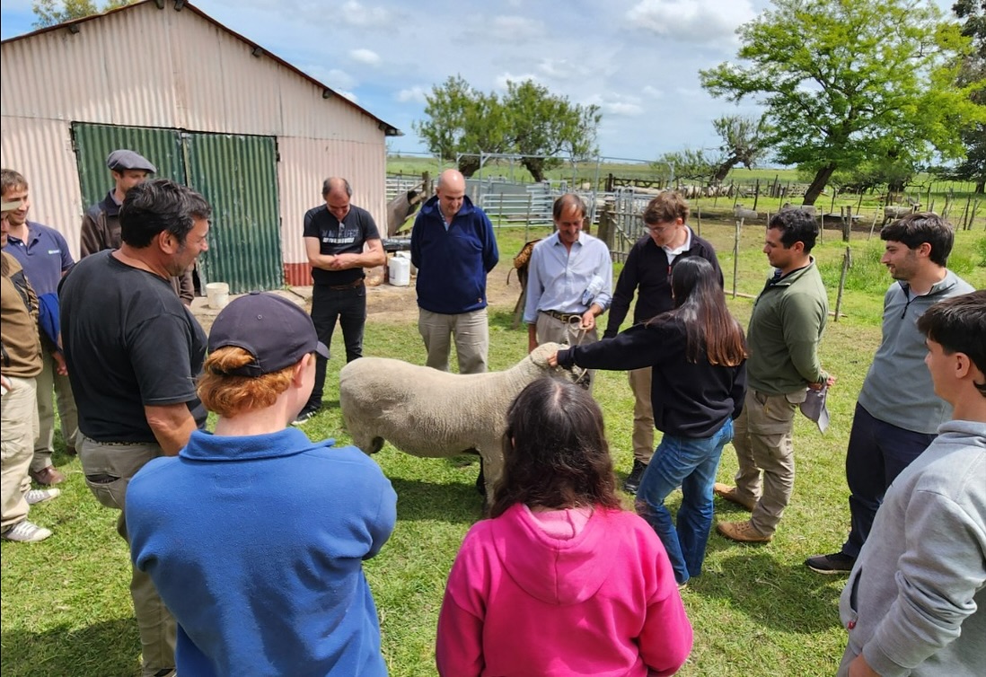 Docentes de la Escuela de Educación Agropecuaria Nº1 más el ayacuchense Marcelo Bracco, del INTA local, participaron de una jornada sobre producción ovina en la Cabaña El Charabón, en Coronel Vidal.