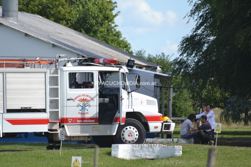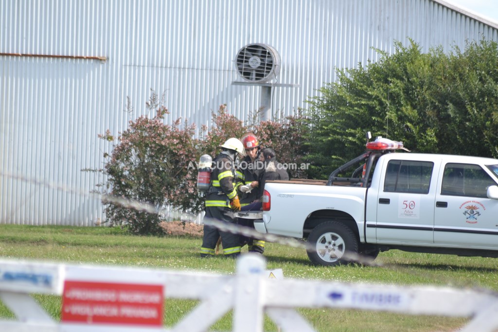 Ayacuchoaldia.com.ar estuvo allí donde además de poder tomar algunas imágenes desde la ruta dado que no se nos permitió ingresar al predio, pudimos saber que trabajadores del lugar estaban realizando una reparación con una soldadora y aparentemente una chispa habría dado con una canaleta que transporta sustancias químicas, lo cual comenzó a generar un humo negro y espeso, que obligó a los trabajadores a convocar a los Bomberos Voluntarios, que en principio iban a acudir con dos autobombas más una unidad de apoyo pero finalmente estuvo allí solo una de ellas.