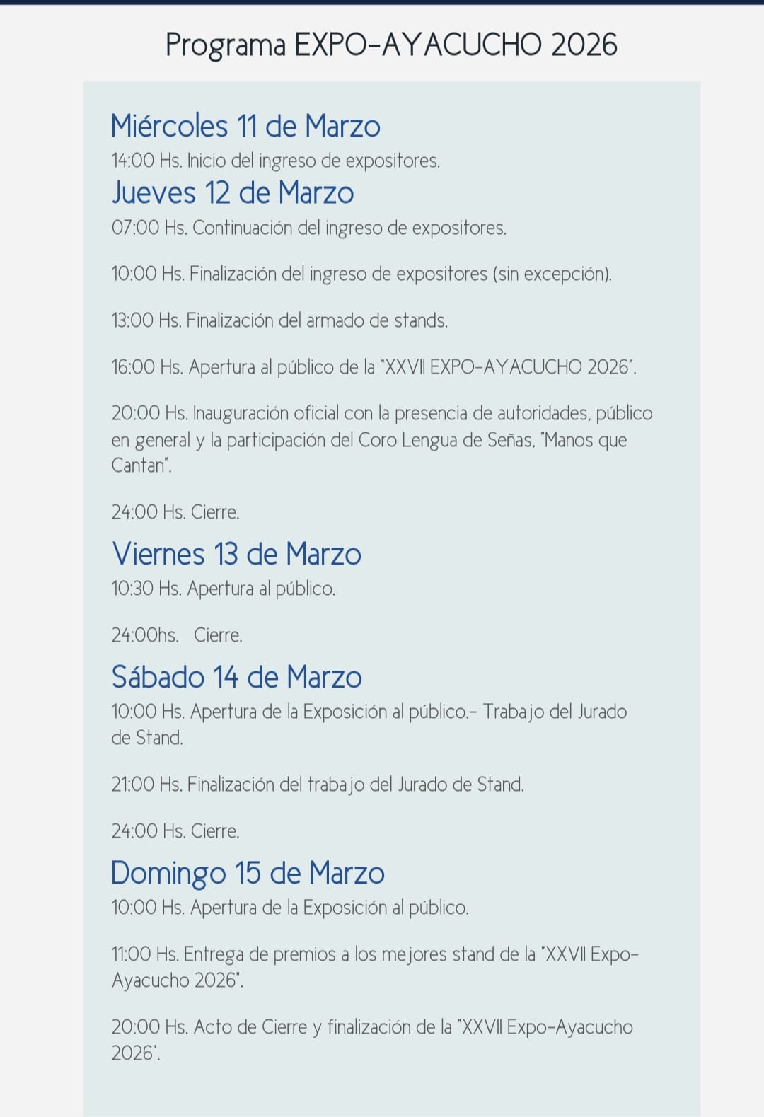 XXVII Expo-Ayacucho – Programa oficial