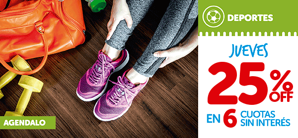 Te adelantamos que este Jueves tenés un 25% de descuento y cuotas sin interés en Deportes y el Viernes, 30% de descuento en Calzado como también 6 sin interés.