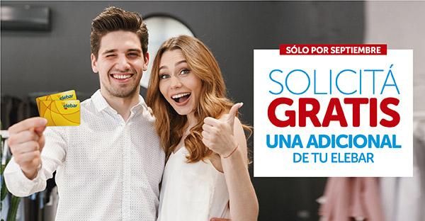 Elebar te sigue premiando y en Septiembre podés solicitar de manera gratuita una Adicional de tu Elebar; y nosotros te regalamos 1000 puntos Megaclub. Elebar siempre junto a vos, premiándote en todo momento.