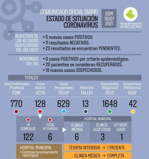También es importante mencionar que de los 128 activos, 6 están internados en el Hospital Municipal.