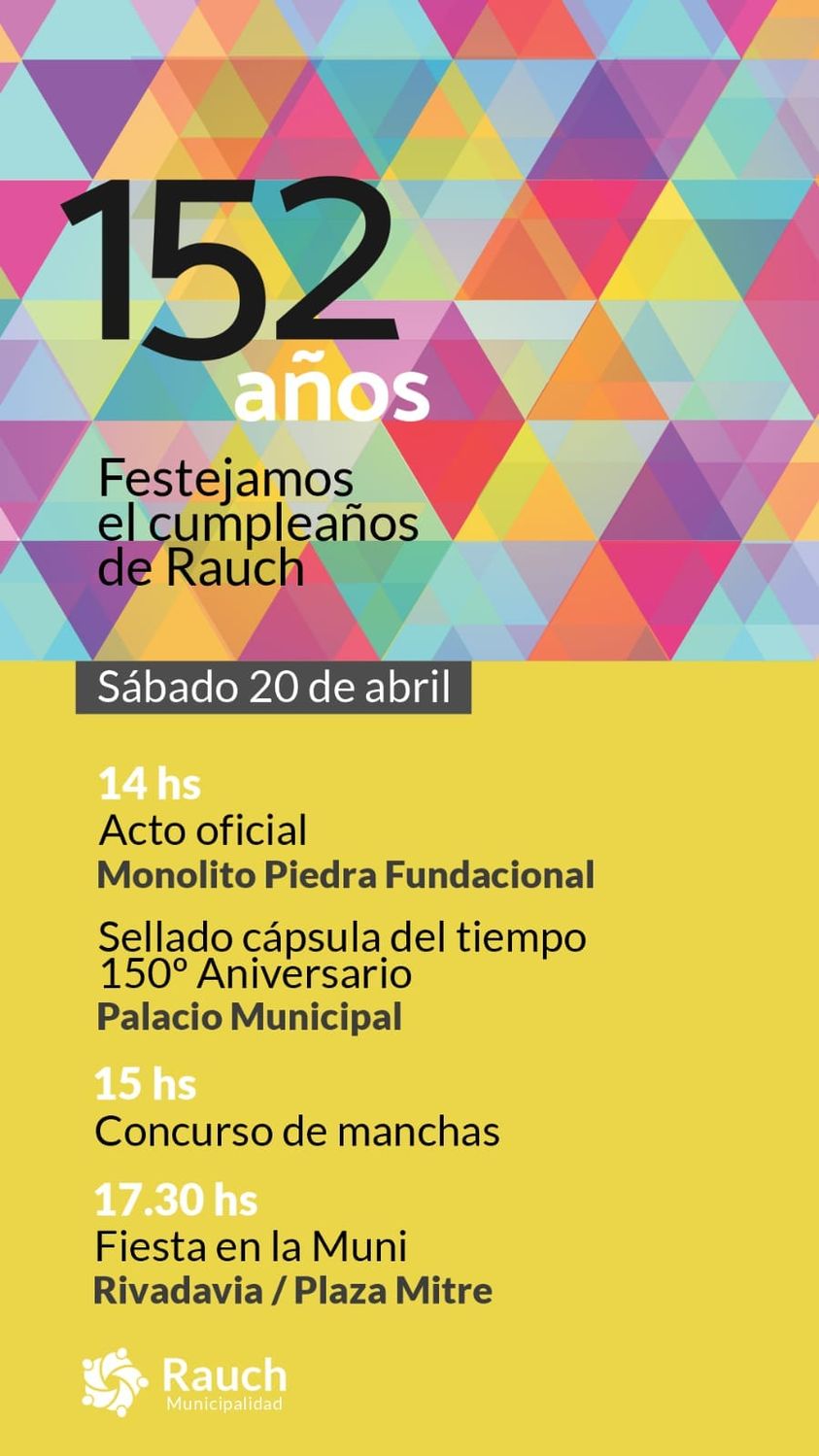 #Rauch152Aniversario – Programa de actos para el sábado 20 de Abril 17 abril, 2024 Pablo Tusq destacados, Zonales y Regionales 0 X