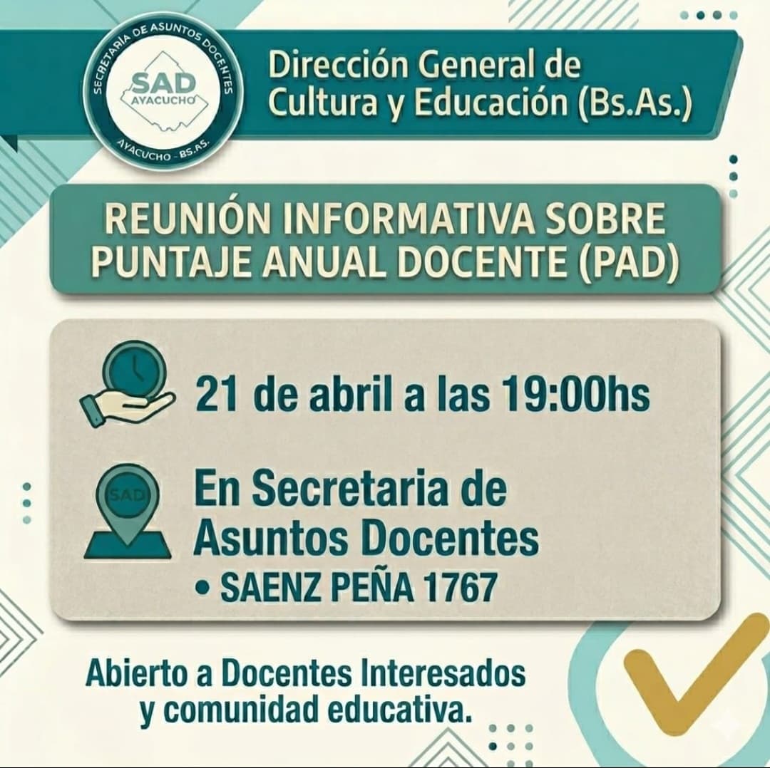 Reunión informativa sobre PAD 2026 – Este martes 21, 19 hs 21 abril, 2026 Pablo Tusq Locales, locales DIA 0 X