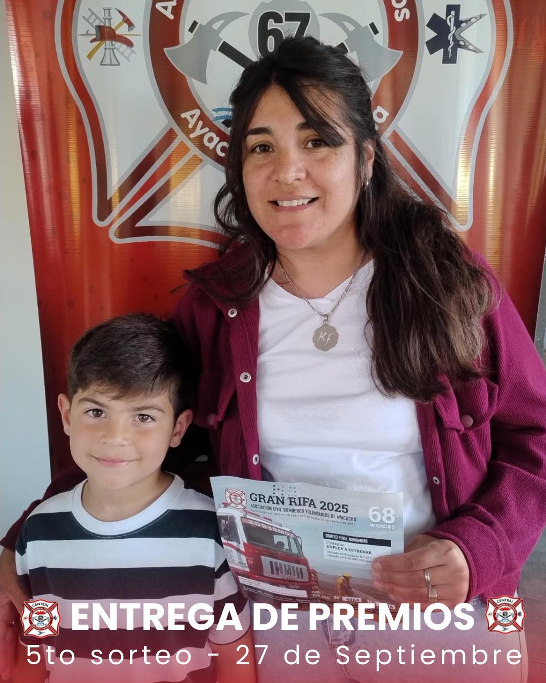El sábado 27 de Septiembre se concretó el 5to sorteo de la Rifa de Bomberos Voluntarios 2025, resultando beneficiarios;