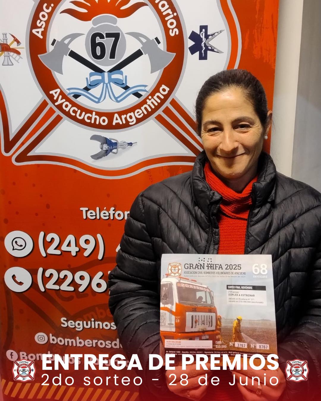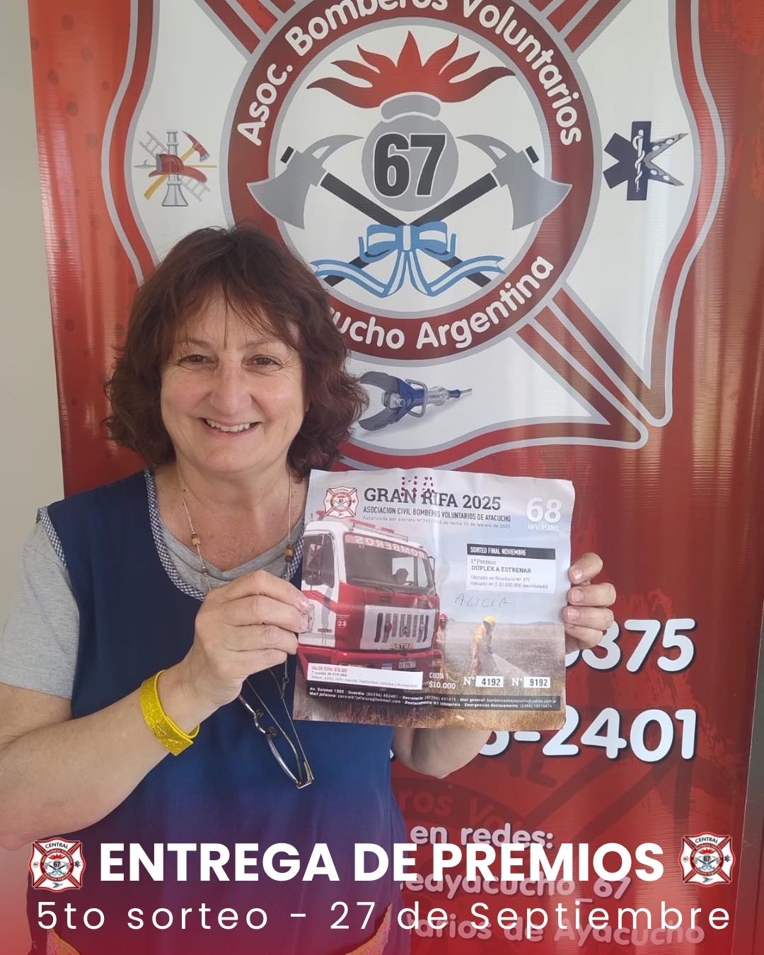 El sábado 27 de Septiembre se concretó el 5to sorteo de la Rifa de Bomberos Voluntarios 2025, resultando beneficiarios;