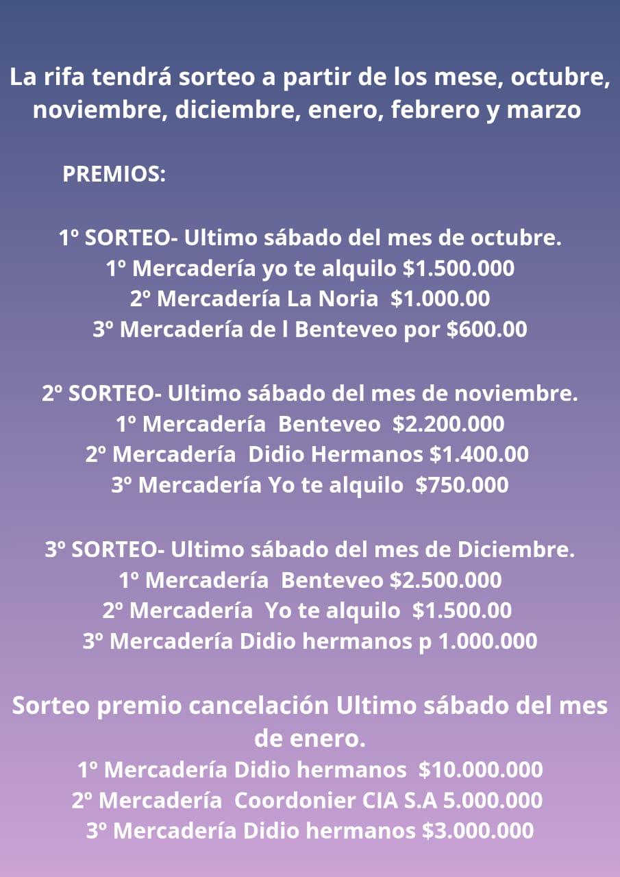 ¡Próximo sorteo último sábado de Febrero! Éxitos