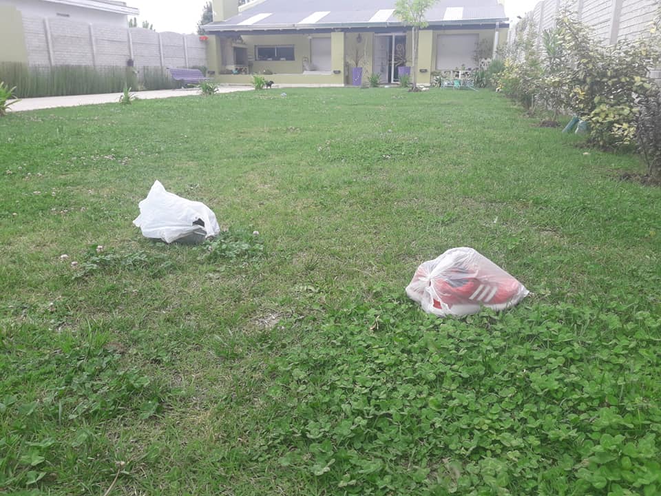 Teniendo en cuenta que lograron identificar al delincuente y publicarlo en las redes sociales buscando una condena social, este Martes en el patio de la vivienda aparecieron 2 pares de zapatillas envueltas en bolsas. “Así amaneció el patio de nuestra casa, el rastrerito este se dignó a devolvernos y tirarnos 2 de los pares de zapatillas que nos había robado por arriba del paredón. Sólo te voy a decir que todavía me falta el par d papis Adidas blancos y que espero que aparezcan. Es lamentable que pase esto en nuestra querida ciudad y en este momento estoy feliz pero a la vez triste y con mucha bronca, porque como dije ayer, ya nos sentimos violados de nuestra privacidad. Y anoche ese rastrero estuvo cerca de nuestra casa nuevamente” señaló el damnificado en su cuenta de Facebook.
