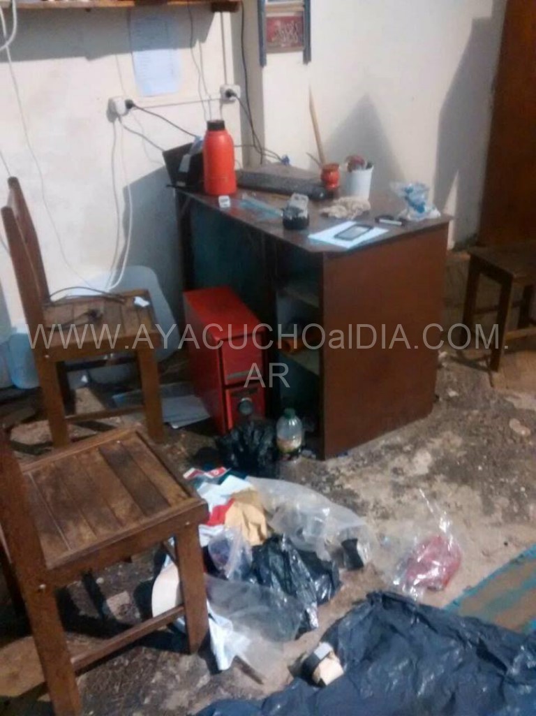 En declaraciones al diario digital www.ayacuchoaldia.com.ar el presidente de la institución José Pintos señaló; “Destruyeron vidrios y abrieron la caja fuerte. Además rompieron la puerta de destreza y se llevaron el monitor. También dinero en efectivo”. La cifra aún no se conoce.