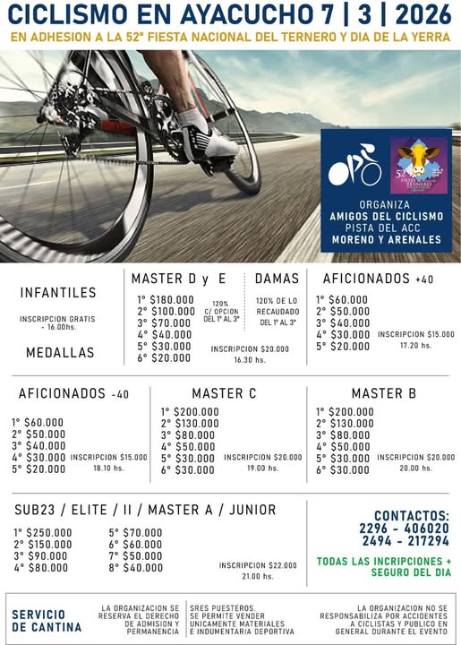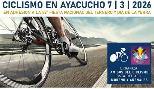 Sábado 7 de Marzo ciclismo en Ayacucho, en adhesión a la 52° Fiesta del Ternero 27 febrero, 2026 Pablo Tusq Deportes, deportes DIA, destacados 0 GRAN TARDE DE CICLISMO SÁBADO 7 DE MARZO AYACUCHO NUEVA COMPETENCIA En adhesión a los 52° Aniversario de la Fiesta Nacional del Ternero y Día de la Yerra Te esperamos para vivir una jornada a puro ciclismo, velocidad, adrenalina y pasión sobre ruedas. Sumate y sé parte de la fiesta. @destacar X