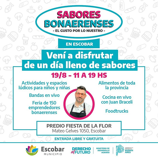 El sábado 19 de agosto se llevará a cabo la segunda edición de Sabores Bonaerenses, la feria de alimentos artesanales de la provincia de Buenos Aires, en la localidad de Escobar