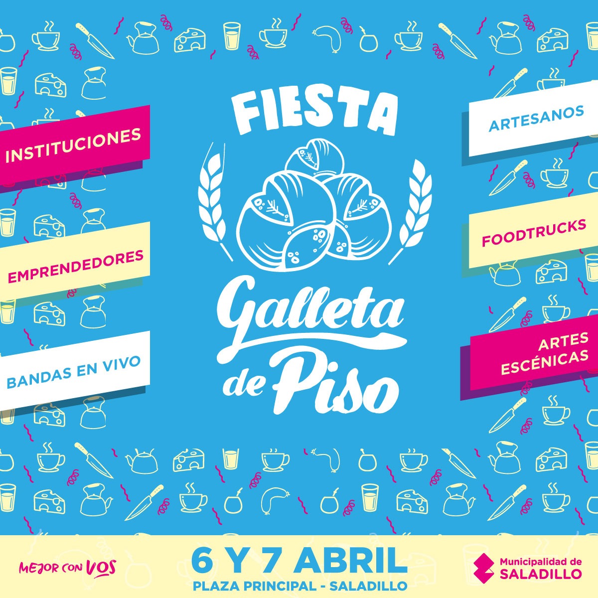 Los días 6 y 7 de abril se realizará la «Primera Fiesta de la Galleta de Piso» en la Plaza Principal de Saladillo, evento que la ciudad espera que sea identitario, donde se podrán disfrutar del paseo de emprendedores, patio de comidas, la presentación de artistas locales y el cierre estará a cargo de Agapornis.