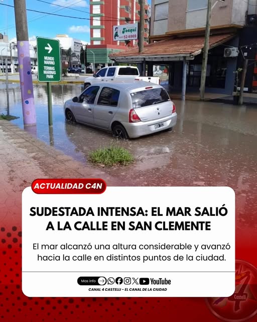 En el centro se registraron calles anegadas, con algunos vehículos afectados, mientras que la ría en la zona oeste también desbordó. En el área del vivero el agua salió a la calzada, y en sectores de Punta Rasa y Tapera de López el mar anegó zonas donde hay casas rodantes.