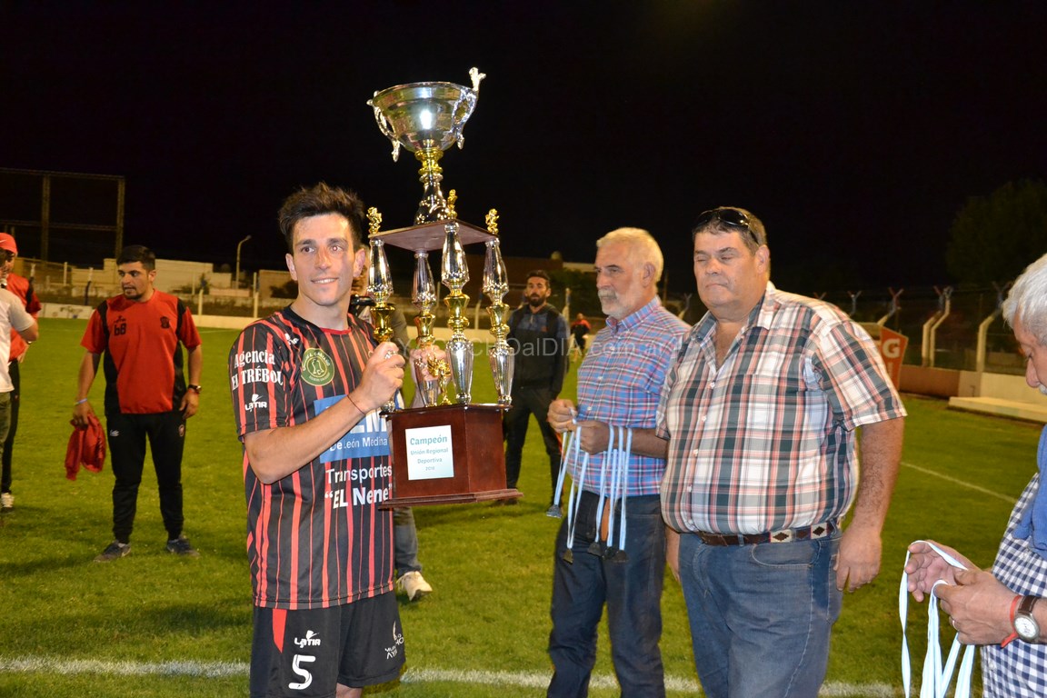 Sarmiento lo logró, Sarmiento está de vuelta. El rojinegro de Ayacucho se coronó campeón de la Unión Regional Deportiva 2018 al vencer este Sábado 8 en el San Martín por 1 a 0 a Grupo Universitario y así lograr su primera conquista del certamen que reúne a las 4 ciudades. El gol lo marcó Joaquín Didio (la figura de la cancha) en el primer tiempo. Un festejo inmenso se desató en el estadio con un gran número de simpatizantes que se acercó hasta la vecina localidad.