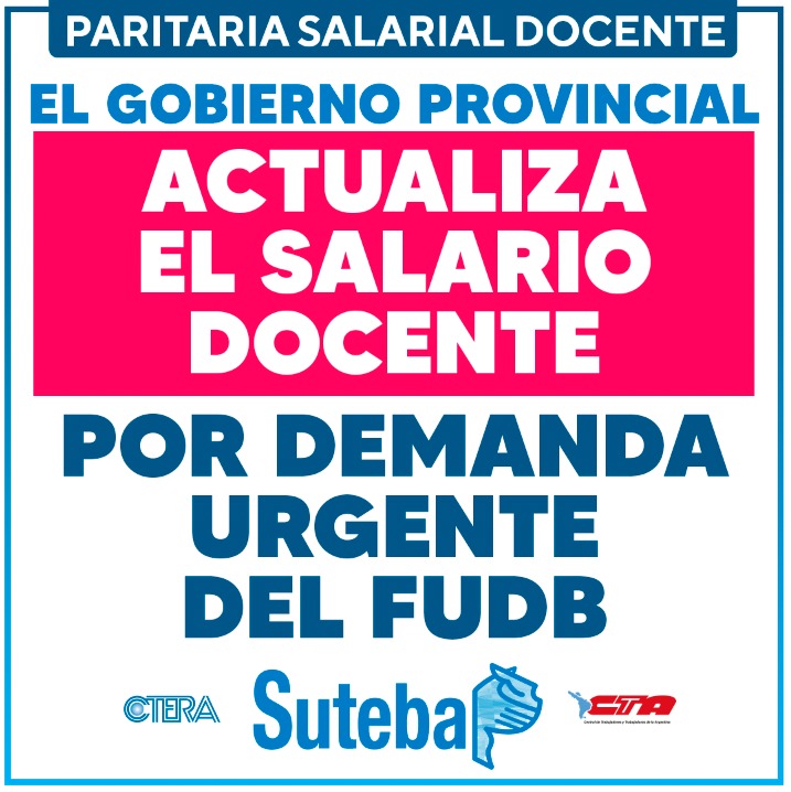 Este aumento será percibido a partir del próximo cobro por todos/as los/as docentes en actividad y también los/las docentes jubilados/as.