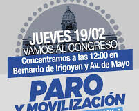El Frente de Sindicatos Unidos (FreSU) ratifica el Paro Nacional y la movilización al Congreso de la Nación prevista para este jueves 19 de febrero, cuando se realizará una jornada de lucha en todo el país en coincidencia con el tratamiento del proyecto de reforma laboral en la Cámara de Diputados.
