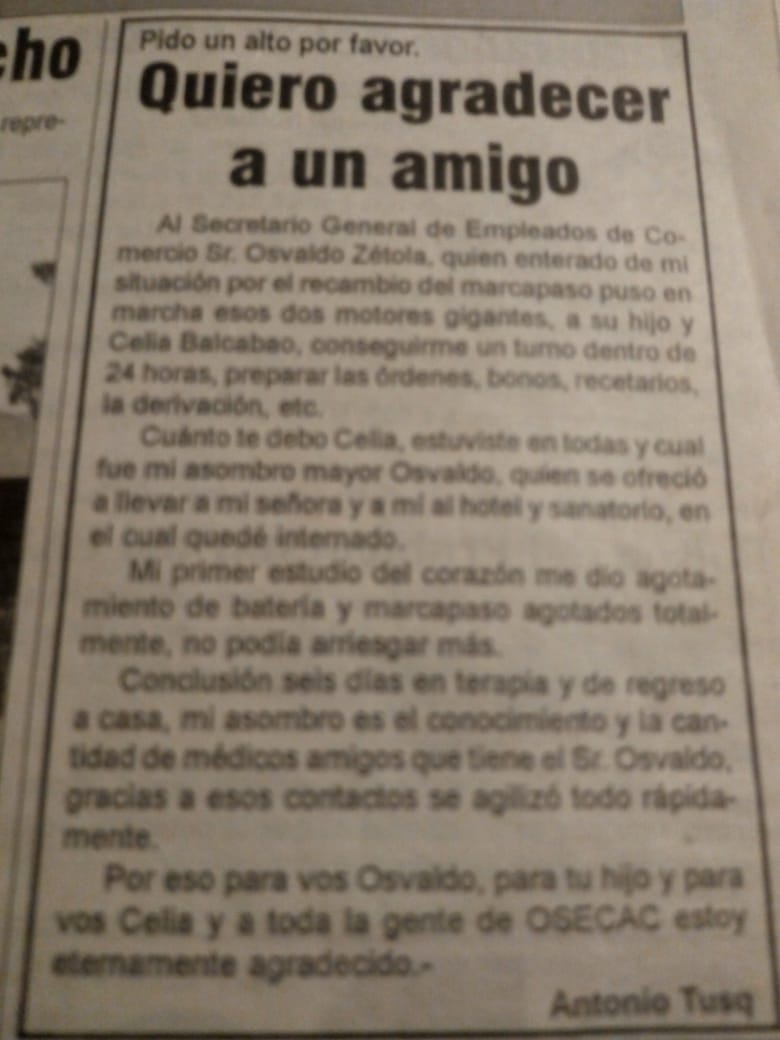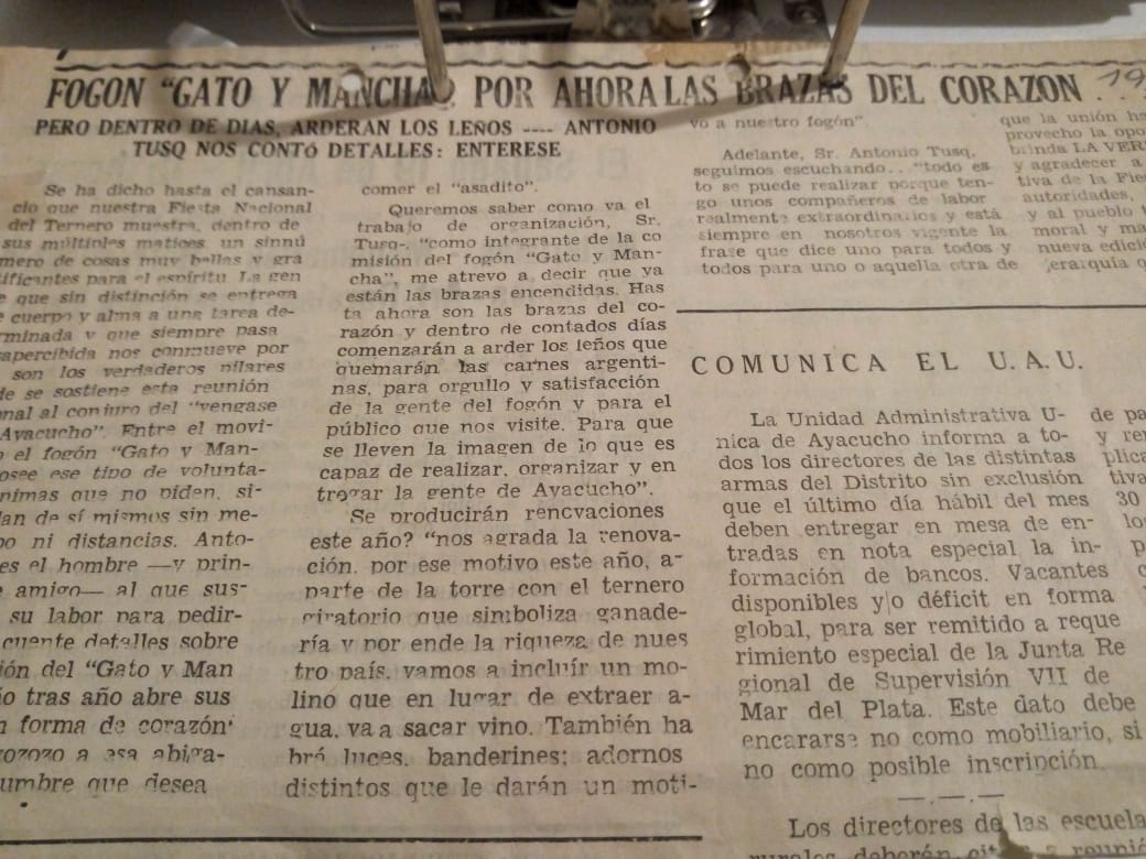 En esta oportunidad haremos un recorrido en el diario www.ayacuchoaldia.com.ar de la vida de un verdadero personaje que tiene nuestro pueblo. El título de la nota, refleja lo que hizo, a lo que llegó, y su inserción en la comunidad “Un señor” como se suele decir. Esta es la trayectoria, de Antonio Tusq.