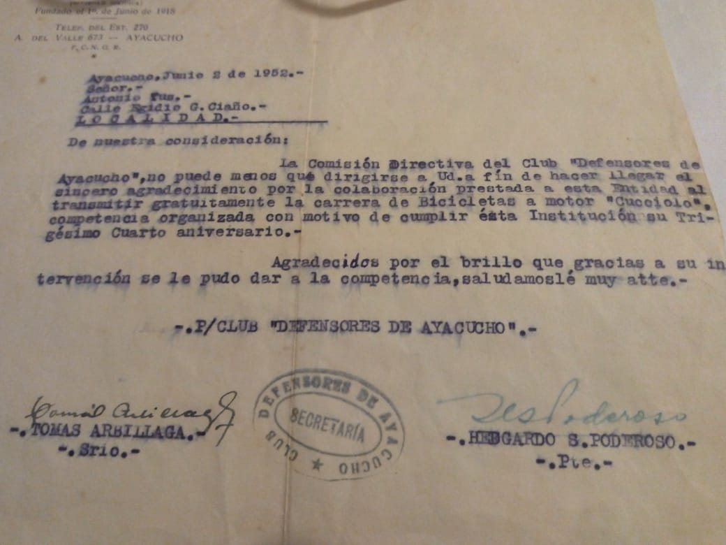Estos dos corajudos del micrófono, entregaban su apasionado relato, con fluídas palabras y ocurrentes apreciaciones sobre el deporte motor, y todo ello mediante la empresa de publicidad “Rayo”. Las notas gráficas, muestran el excelente trabajo que realizaba la casa de fotografía de Ramos e Hijo, conocido con el tiempo como “Foto Estudio Norma”.