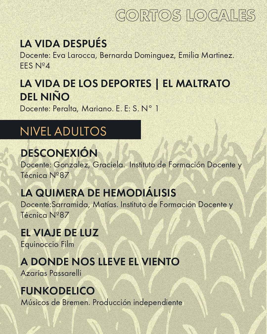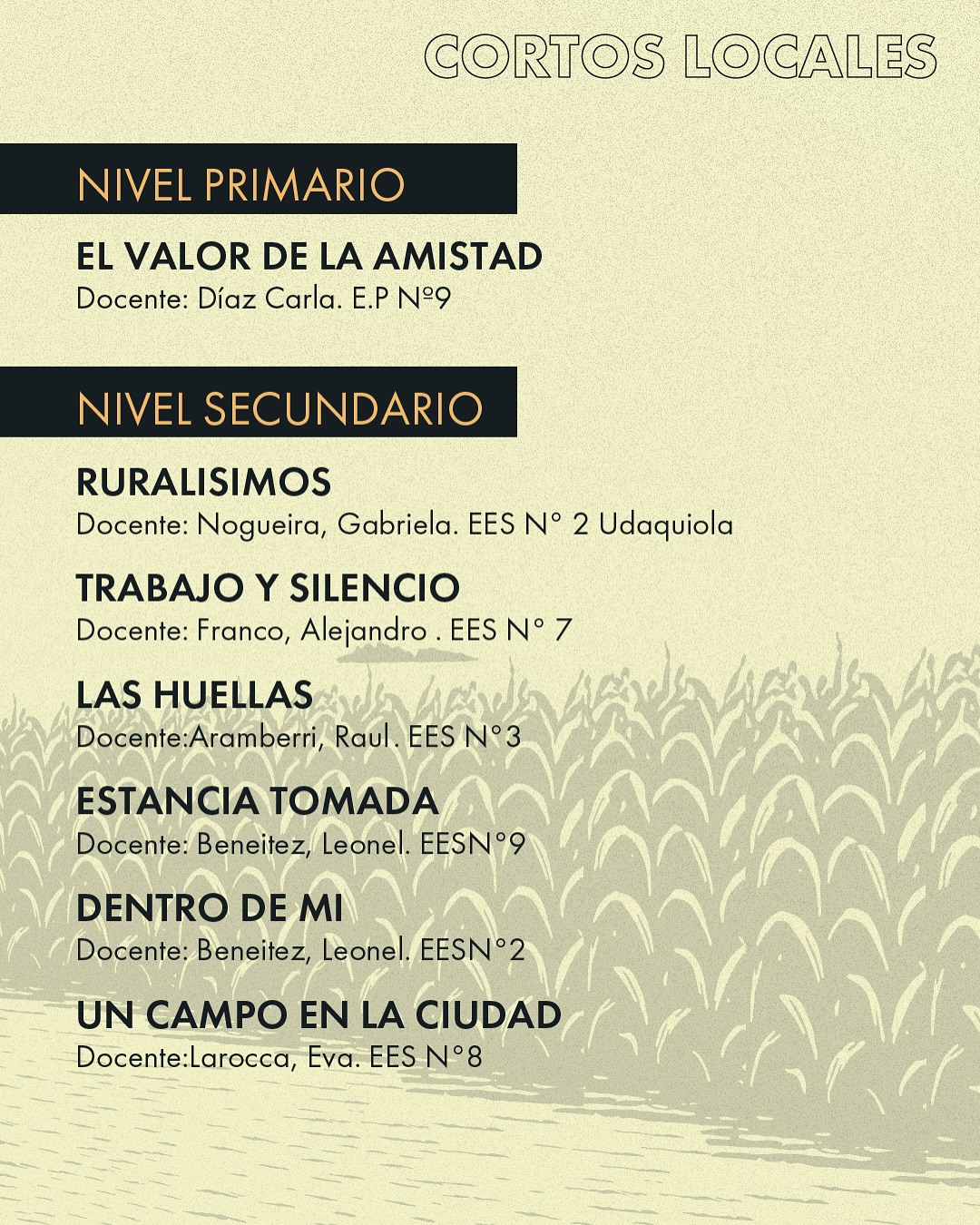 19:00 hs Competencia de Cortos Locales / Premiación 🏆