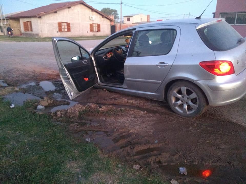 Ocurrió este martes en Vilardaga y Pasteur, cuando un convecino circulaba en su automóvil particular. Sería por las obras realizadas recientemente por la empresa que presta el servicio de agua potable, donde habría quedado este zanjón en plena calle.